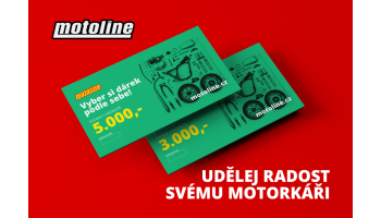 Dárkový poukaz Motoline.cz – ideální dárek pro každého motorkáře! Ať už vybíráte překvapení od manželky, partnerky, kamaráda, nebo si chcete udělat radost sami, s poukazem rozhodně nesáhnete vedle. Vyberte si hodnotu 1 000 Kč, 3 000 Kč nebo 5 000 Kč a dopřejte sobě či blízkým kvalitní vybavení, doplňky i díly na motorku přesně podle vlastního výběru.