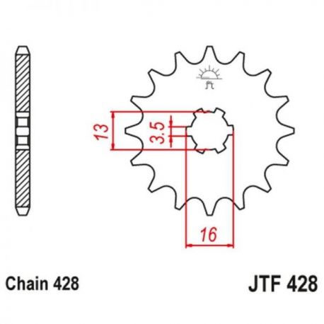 JT, přední řetězové kolečko 428 14 Suzuki DR-Z 50 '19-21', DR-Z 70 '08-18', DS/JR/RM/RG/GT/TS 80 '77-03' (42814JT) (řetěz 428)
