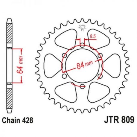 JT, rozeta 809 51 KREIDLER 125 SUPERMOTO '07-08, TS 125 '73-77 (JTR809.51) (řetěz 428)