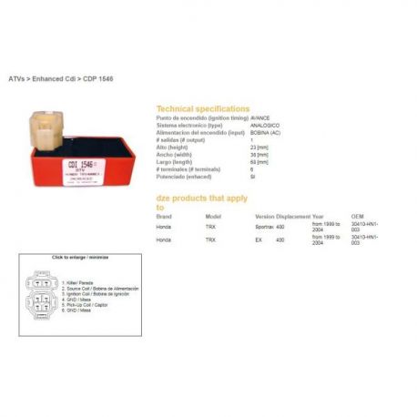 DZE, jednotka zapalování CDI, Honda TRX400EX 99-04, SPORTRAX 99-04 (TUNING)