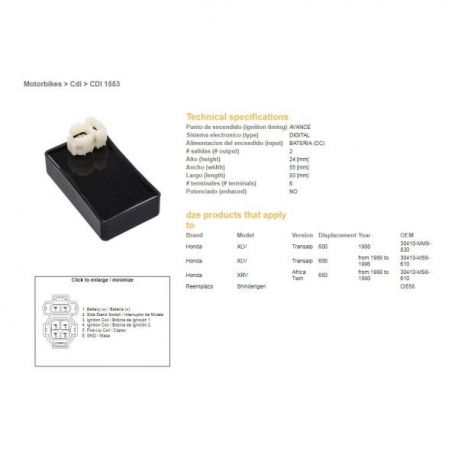 DZE, jednotka zapalování CDI, Honda XL 600 V TRANSALP (89-99), XRV 650 AFRICA TWIN (88-00) (30410-MS8-610)