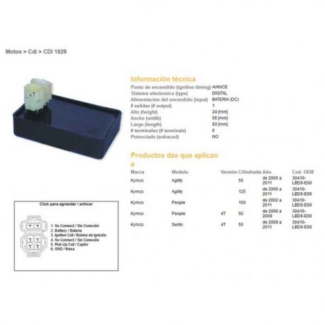 DZE, jednotka zapalování CDI, Kymco AGILITY 50/125`06-11, PEOPLE 50`06-11