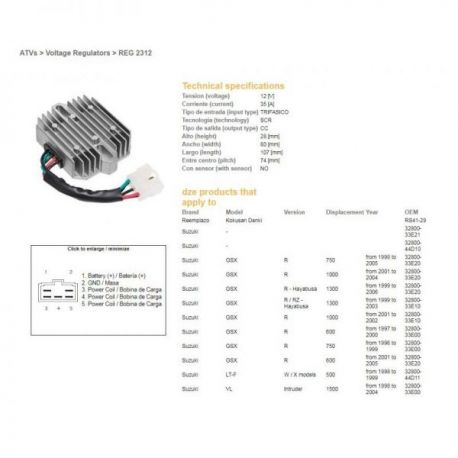 DZE, regulator napětí, Suzuki GSXR 600 '97-'05, GSXR 750 '96-'05, VL 1500 98-04, GSXR1000/1300 (ESR550) (32800-33E20)