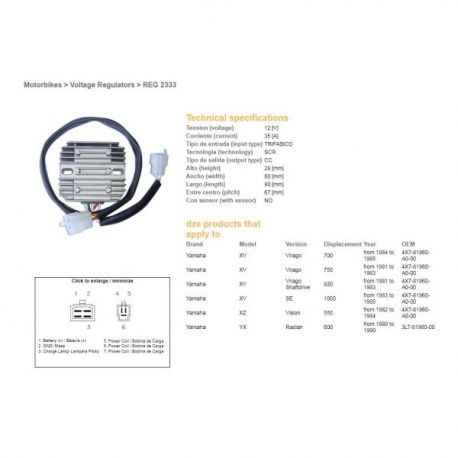 DZE, regulator napětí, Yamaha XV 750/920 '81-'83, XV 1000 '83-'85, TR1, XZ 550 (ESR390, RGU-212)