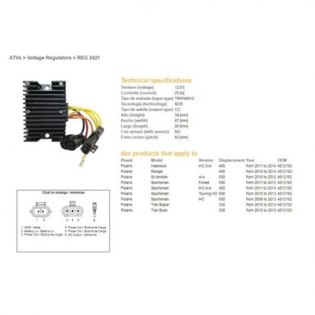 DZE, regulator napětí, Polaris SPORTSMAN 400/500 '09-'14, RANGER 400 '10-'14, SCRAMBLER 500 '10-'12 (4012192)