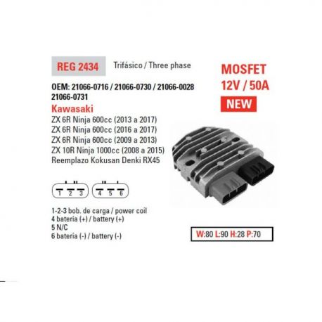 DZE, regulator napětí, Kawasaki ZX6R '09-'17, ZX10R '08-'15 12V 50A (MOSFET) (ESR596)
