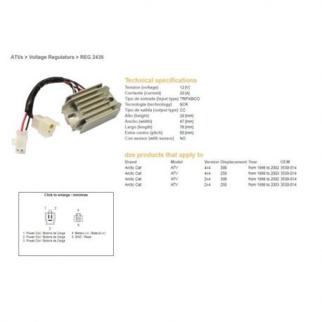 DZE, regulator napětí, ARCTIC CAT 250 '99-'03, 300 '98-'02 12V20A (3530-014)