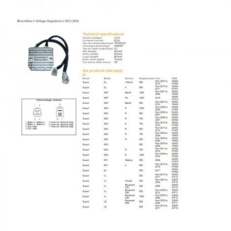DZE, regulator napětí, Suzuki GSXR 600/750 06-18, GSXR1000 07-16, GSF1250, VL800/1500, DL650 13-17, SFV650 GLADIUS, VZ800 05-09,
