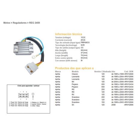 DZE, regulator napětí, Aprilia PEGASO 600/650 90-95, RS125 95-09 (20A), LEONARDO, SCARABEO (ESR087)