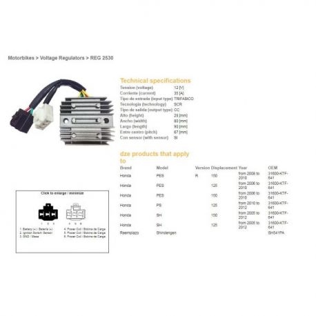 DZE, regulator napětí, Honda SH 125/150 '05-12 (12V, 35A) (31600-KTF-641) (SH541PA) (ESR910)