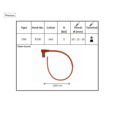 NGK, fajfka na svíčku gumová zahnutá (NR 8736) (90) kábel 50 cmm červená barva, s maticí