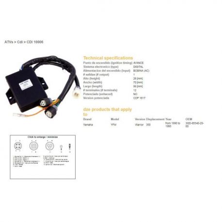 DZE, jednotka zapalování (CDI), Yamaha YFM350 WARRIOR 90-95 (3GD-85540-20-00) (VIC-14602)