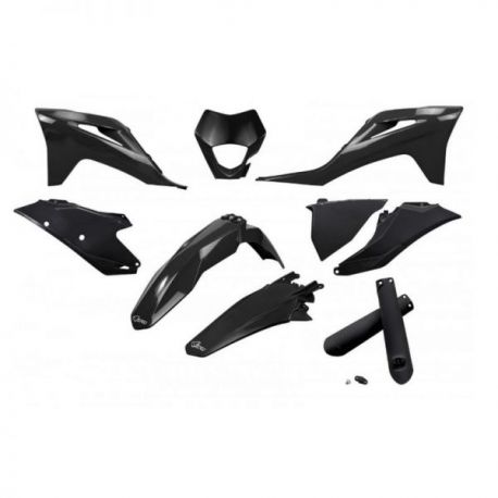 UFO, sada plastů, s kryty přední vidlice, Gas Gas EC / EC-F 250 / 300 / 350 '21-'23, černá barva