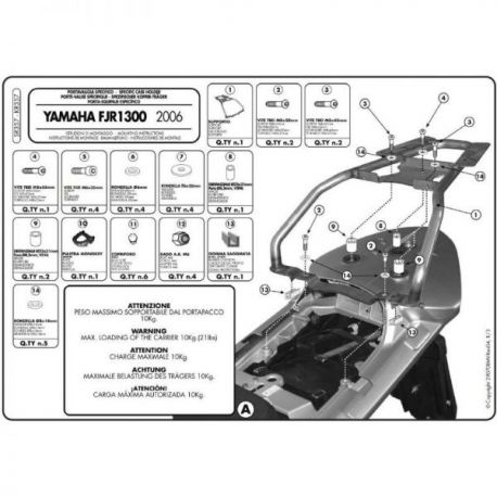 Kappa, nosič centrálního kufru, Yamaha FJR 1300 (06-12) (s plotnou Monokey)