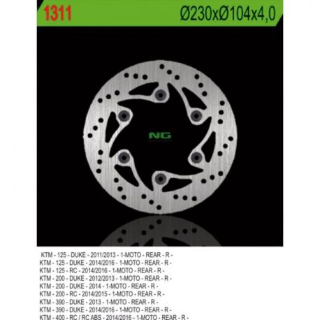 NG, brzdový kotouč, zadní, KTM DUKE 125/200/390 '11-'20, RC 200/390 '14-'20 (230X140X4) (6X10,5)