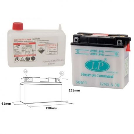Landport, akumulátor 12N5,5-3B 12V 5,5AH 138X61X131, olověný (4) UE2019/1148
