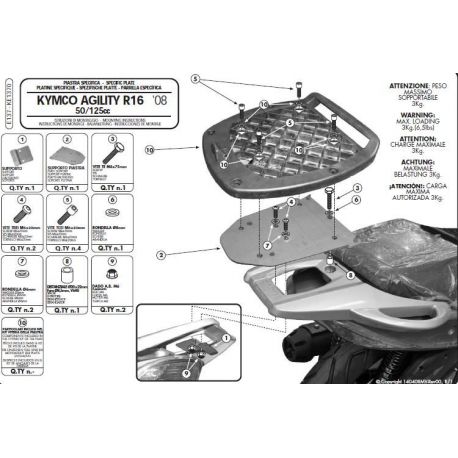 Kappa, nosič centrálního kufru, KYMCO AGILITY 50/125/150/200 R16 (08-13) (bez plotny)