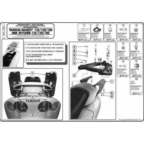 Kappa, nosič centrálního kufru, Yamaha MAJESTY 125/150/180 (01-11) (bez plotny)