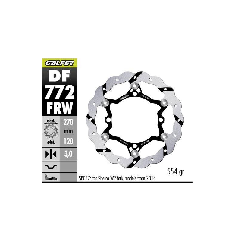 Galfer, přední kotouč, SHERCO SE/SEF 250/300/450/500 '09- (pouze se Sachs WP nutno použít SP047) WAVE (270X120X3MM