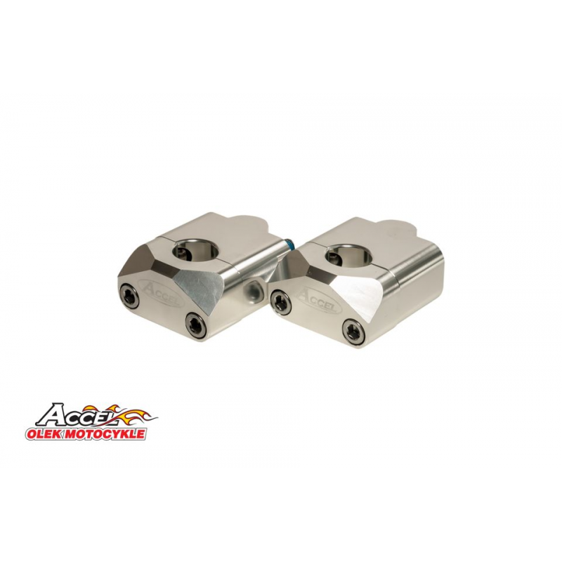 Accel x, zvyšovací držáky řidítek (dole-22,nahoře-2/28,6mm) výška 35mm, stříbrná barva