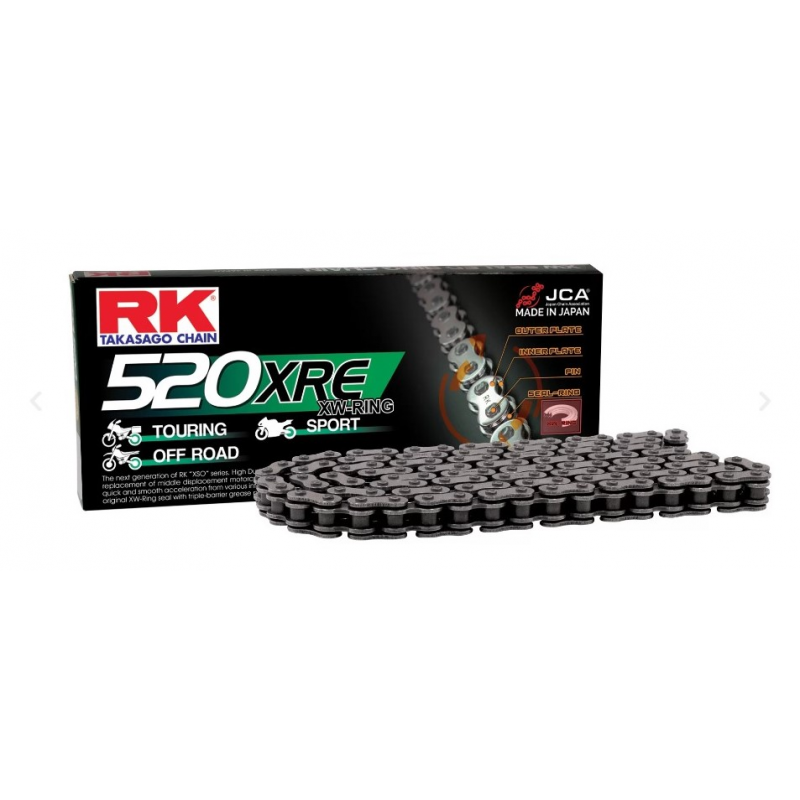 RK, řetěz 520XRE-122 (XW-RING), nýtovací spojka v balení, barva neutral
